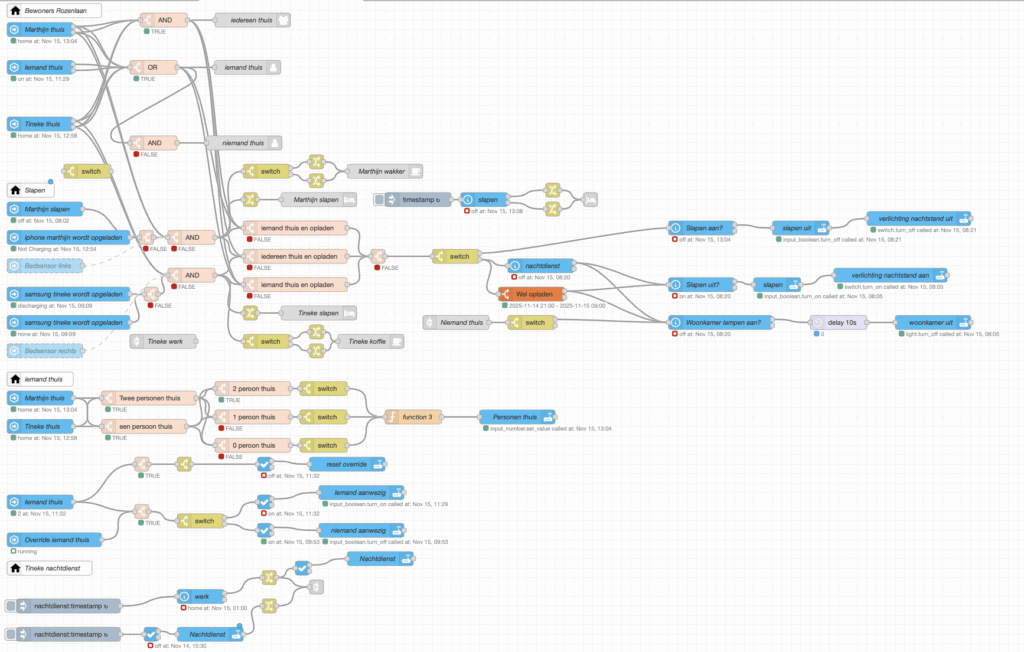 Alles draait in Node-RED, met Home Assistant als basis.